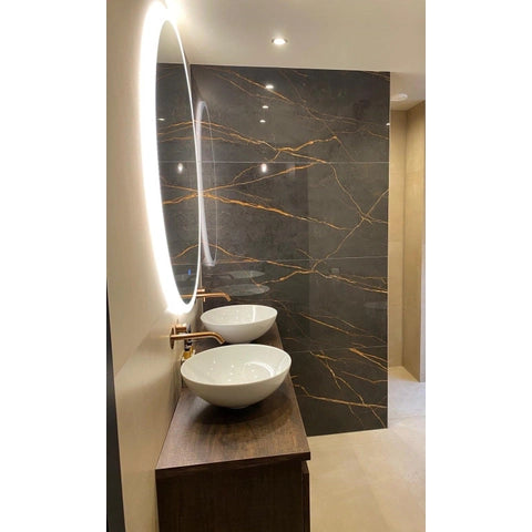 De EnergieKer Saint Laurent tegel straalt een majestueuze uitstraling uit door zijn imposante afmetingen en gepolijste afwerking. Het diepe antraciet van de Laurent polished tegel zorgt voor een luxueuze en elegante sfeer in elke ruimte. De natuursteen look geeft een gevoel van warmte en authenticiteit, waardoor deze tegel een echte eyecatcher is in jouw interieur.